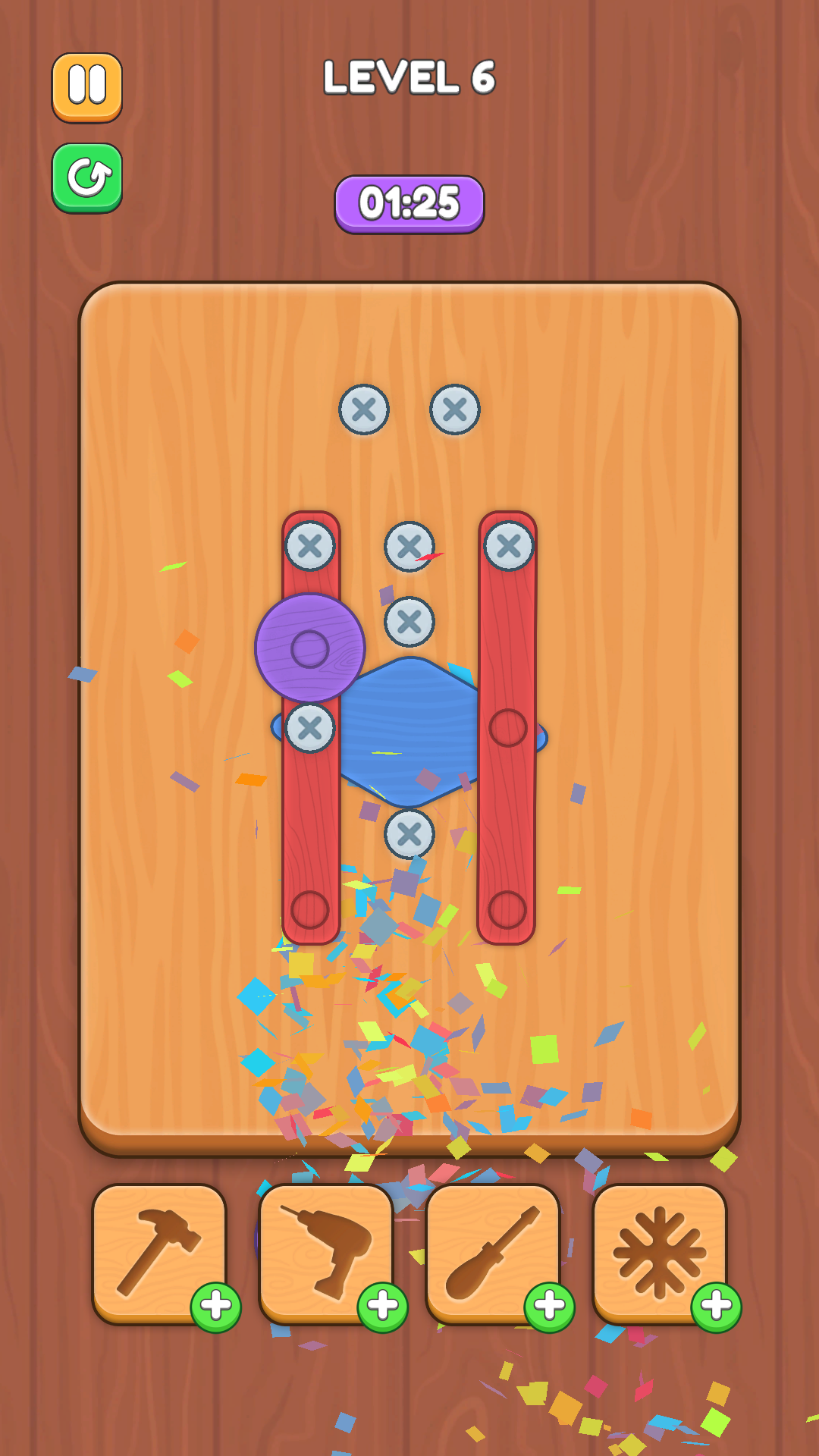 Unscrew the bolts, move the plates, and free the trapped parts. Test your logic and strategy to complete tricky mechanical puzzles.