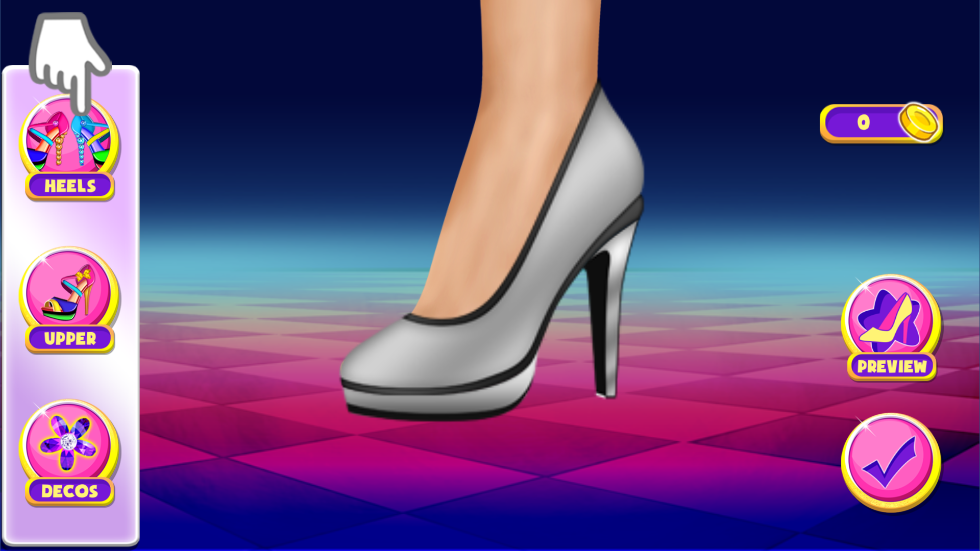 💅 Creative Design Mode – Mix & match heels, uppers, and decos to create dream shoes.