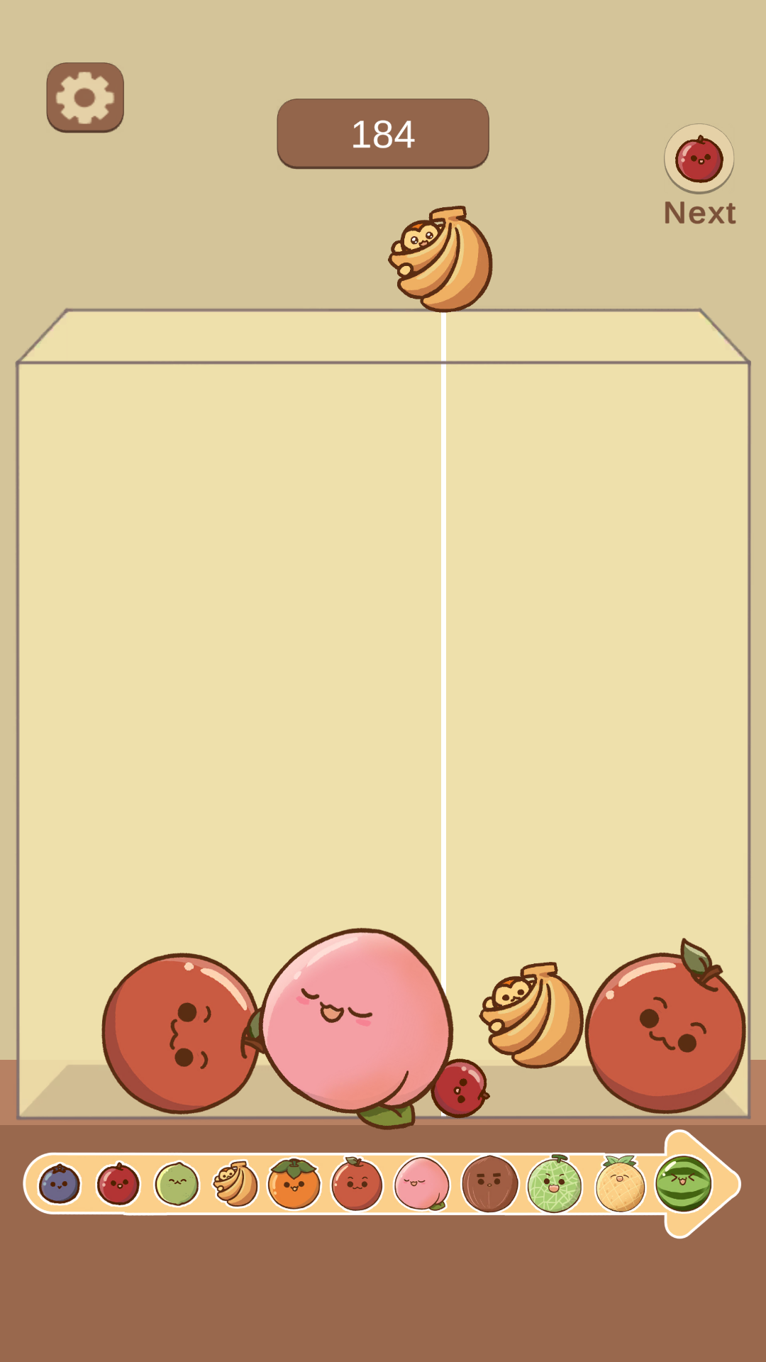 Players drop adorable fruits into a box — when two of the same type touch, they merge into a larger fruit. Keep merging to create the biggest Watermelon before the box overflows!