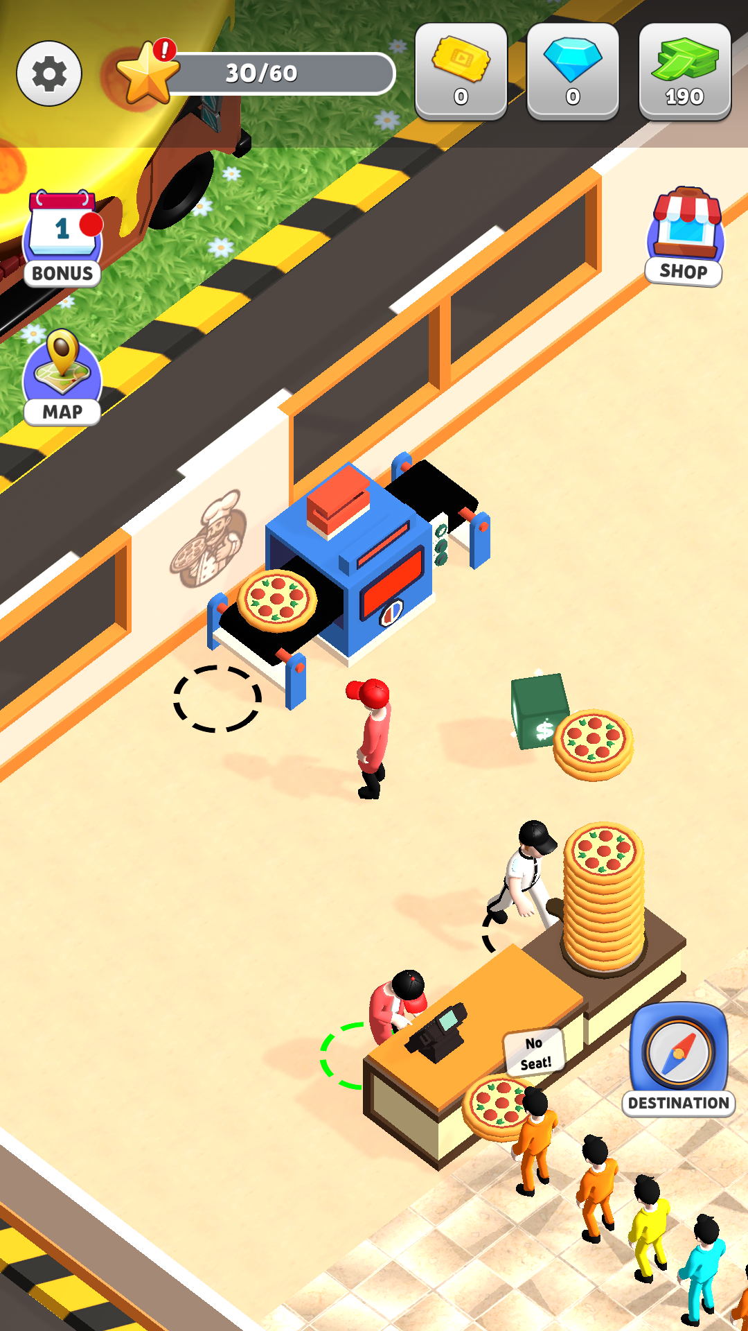 Pizza Restaurant Management – Cook pizzas, serve customers, and
