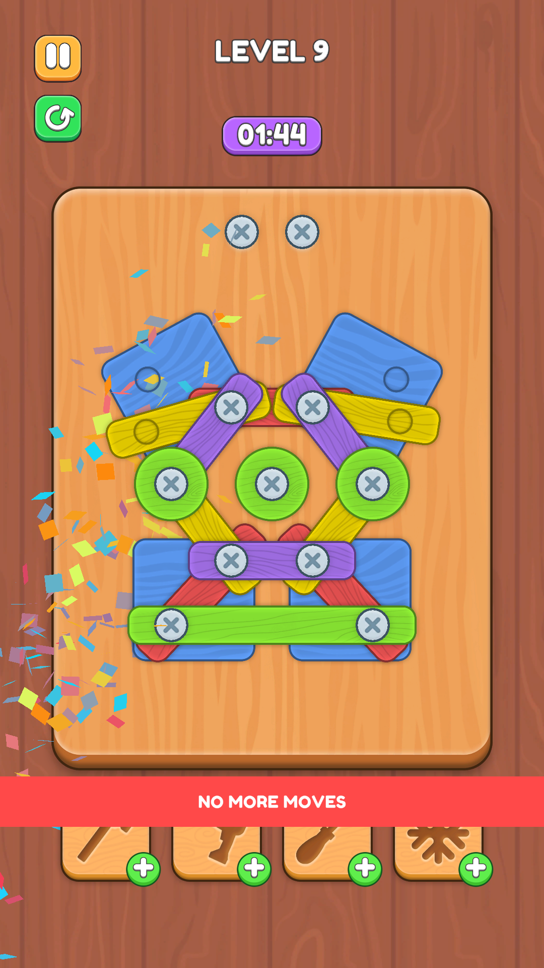 Unscrew the bolts, move the plates, and free the trapped parts. Test your logic and strategy to complete tricky mechanical puzzles.