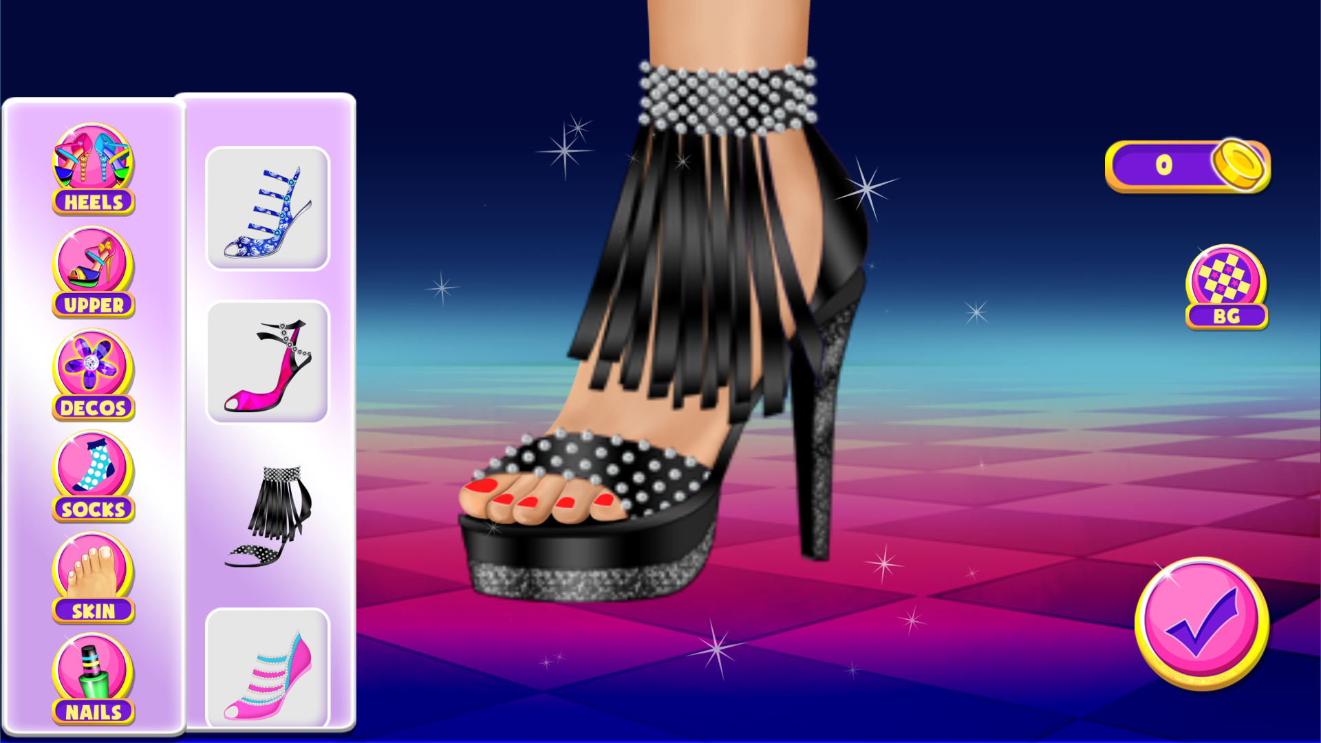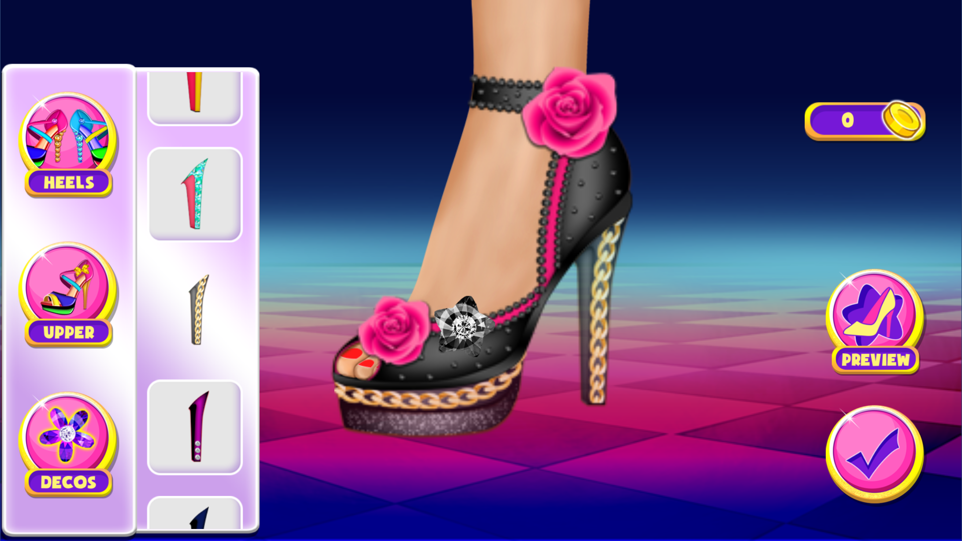 💅 Creative Design Mode – Mix & match heels, uppers, and decos to create dream shoes.