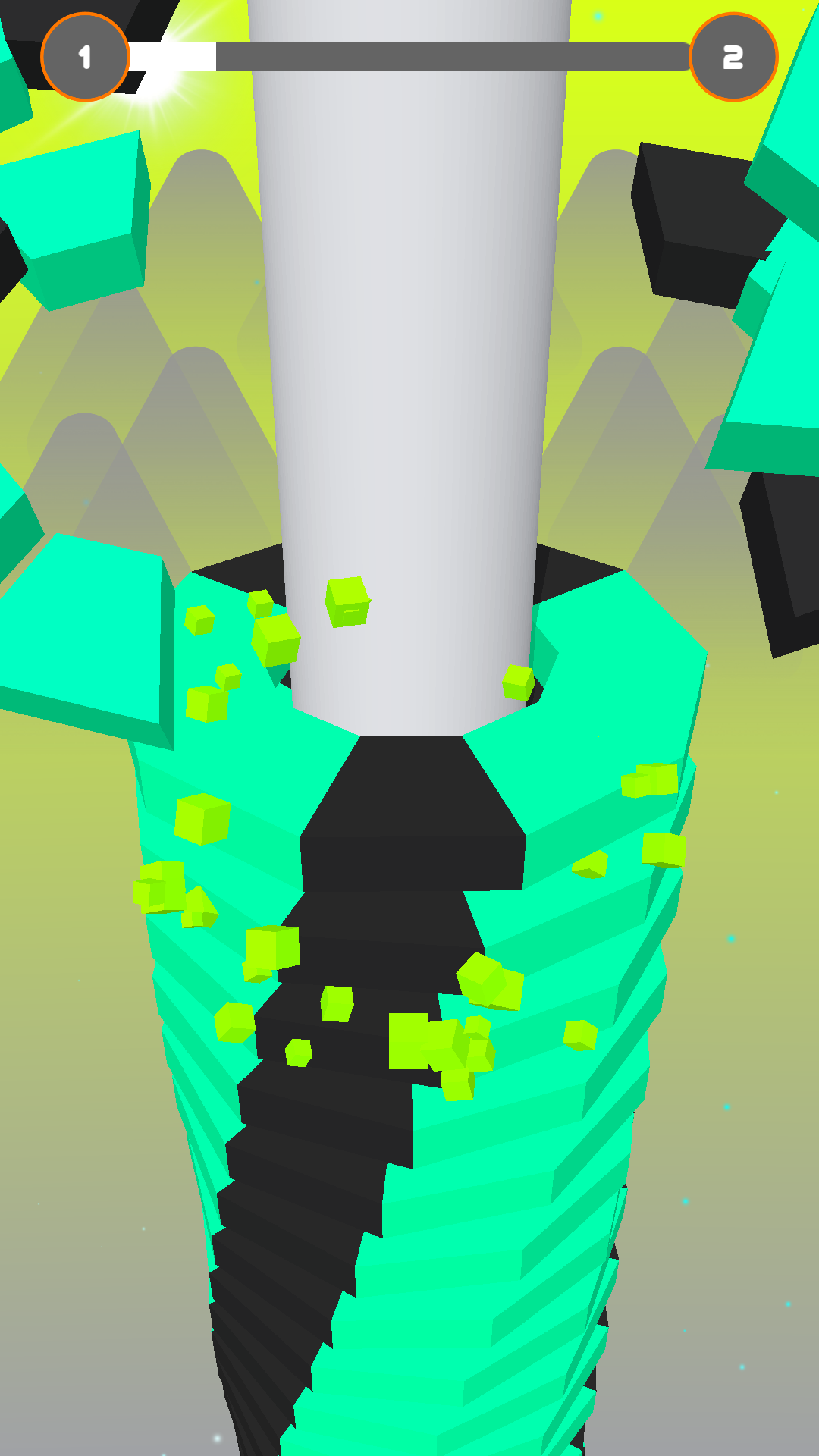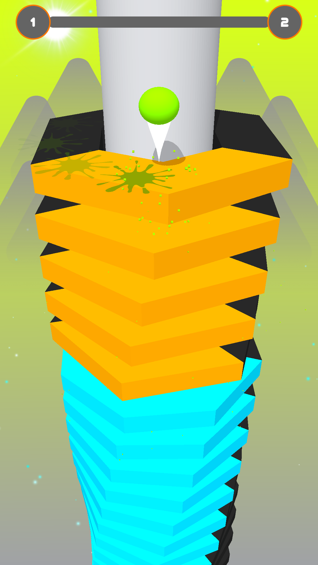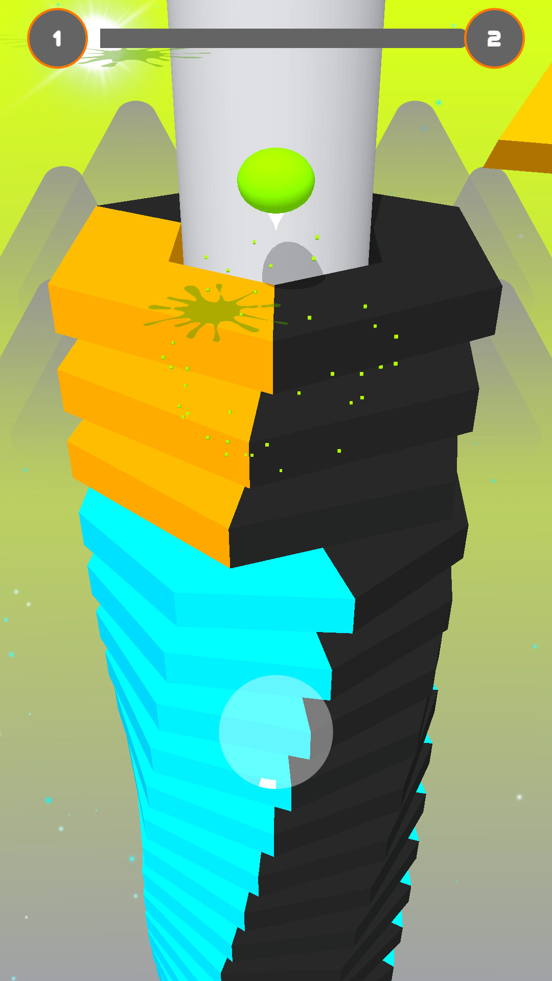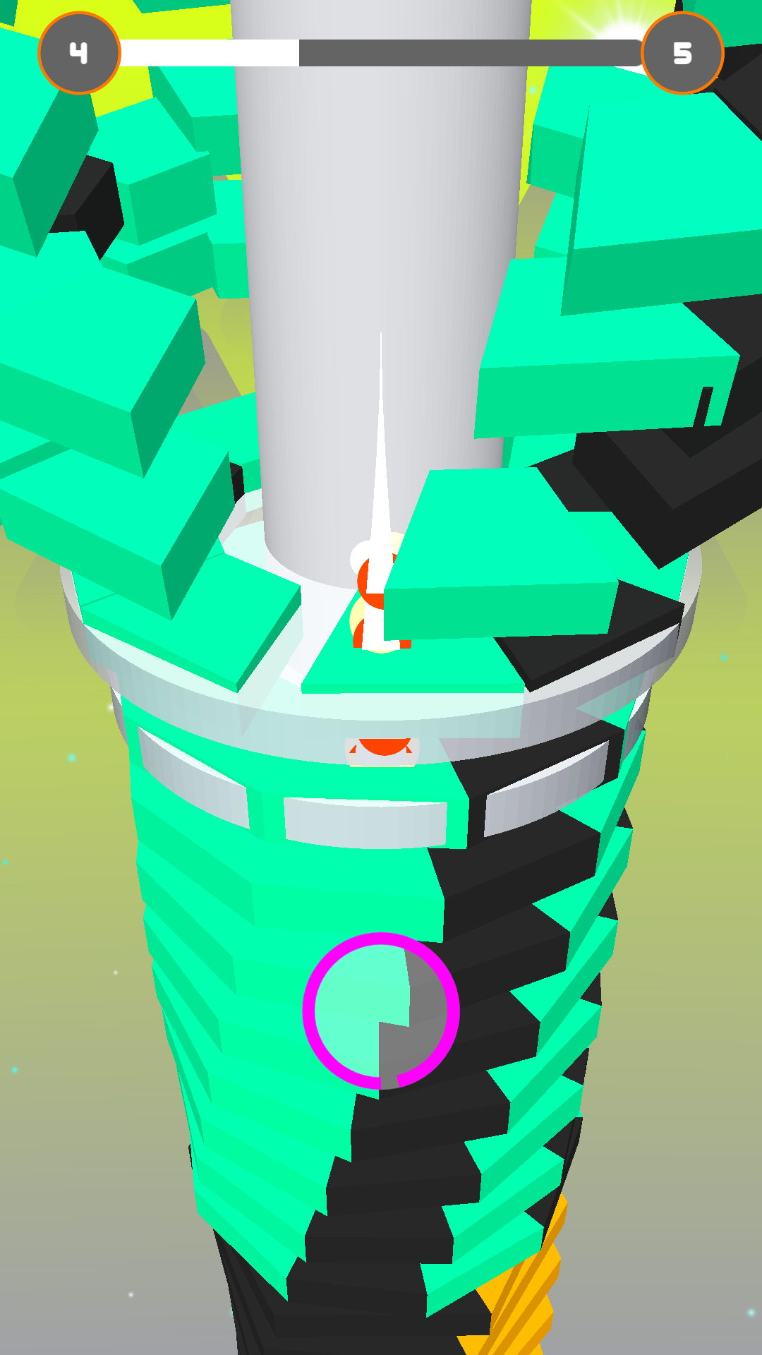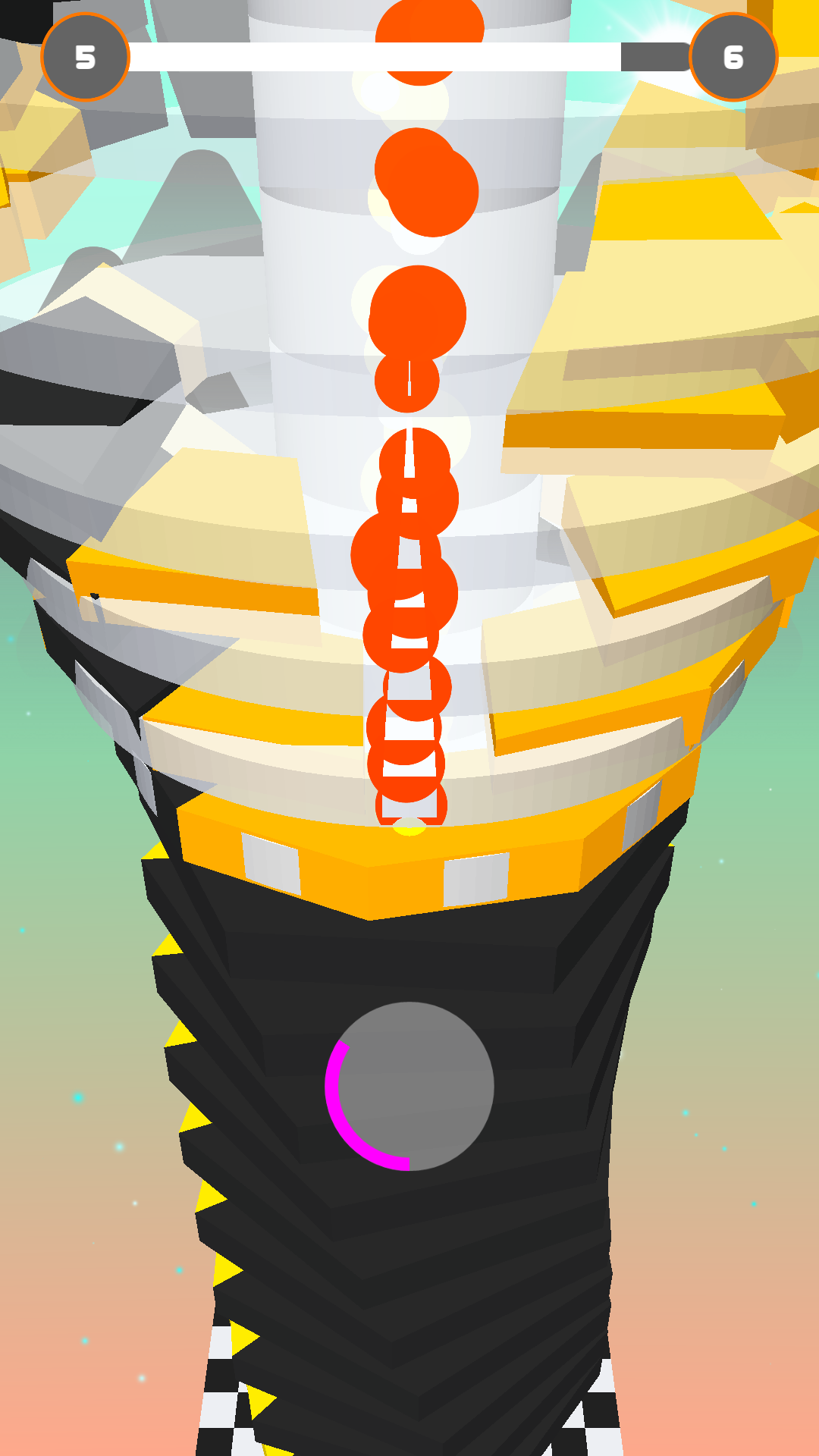 Avoid black obstacles, keep smashing layers, and reach the bottom of the helix tower to win!