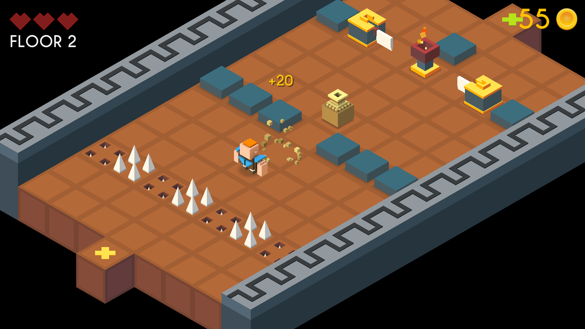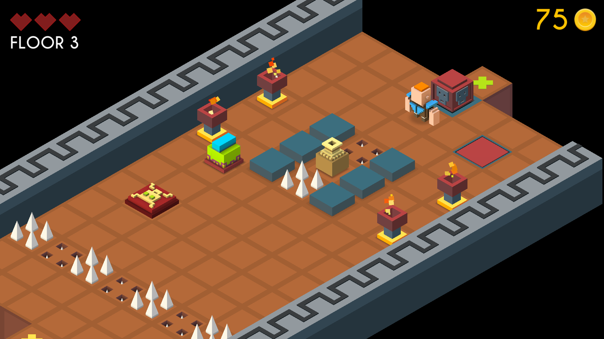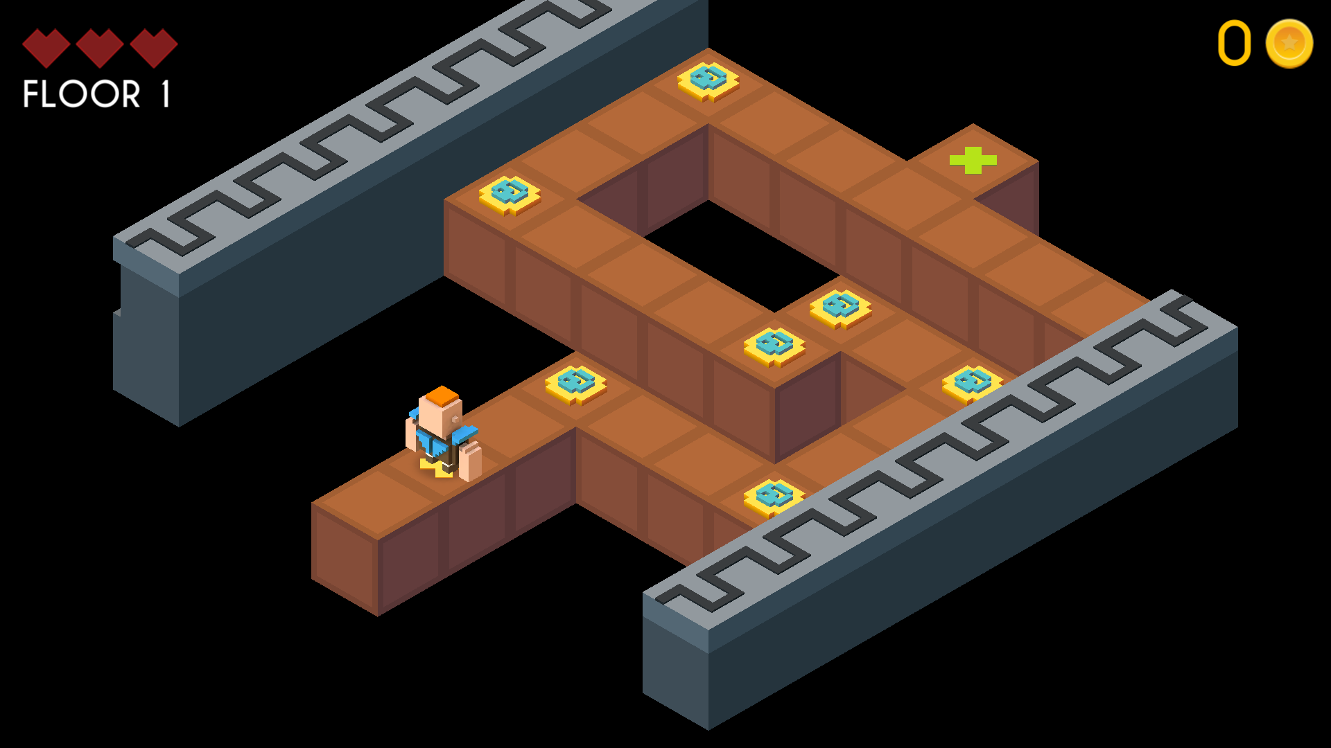 🧱 Isometric Adventure – Navigate 3D-style floors filled with traps and treasures.