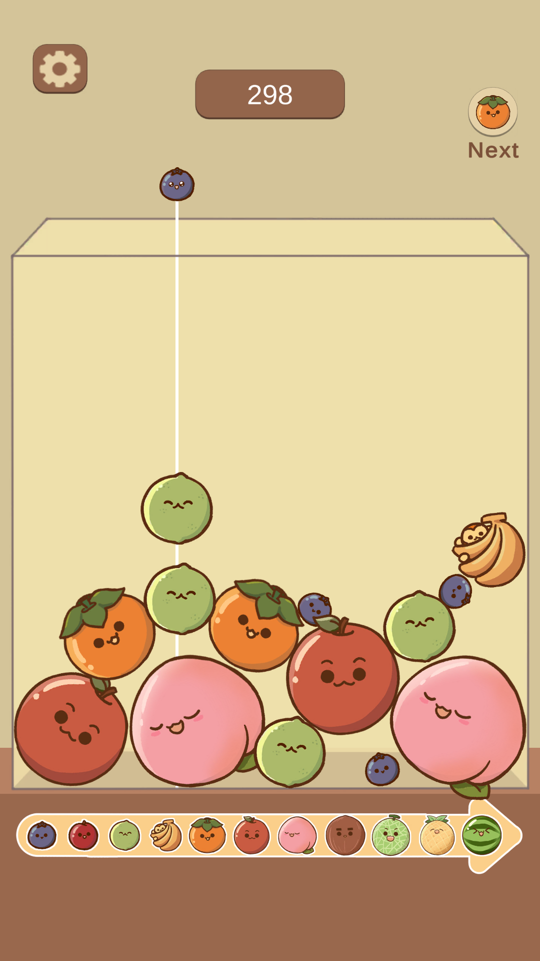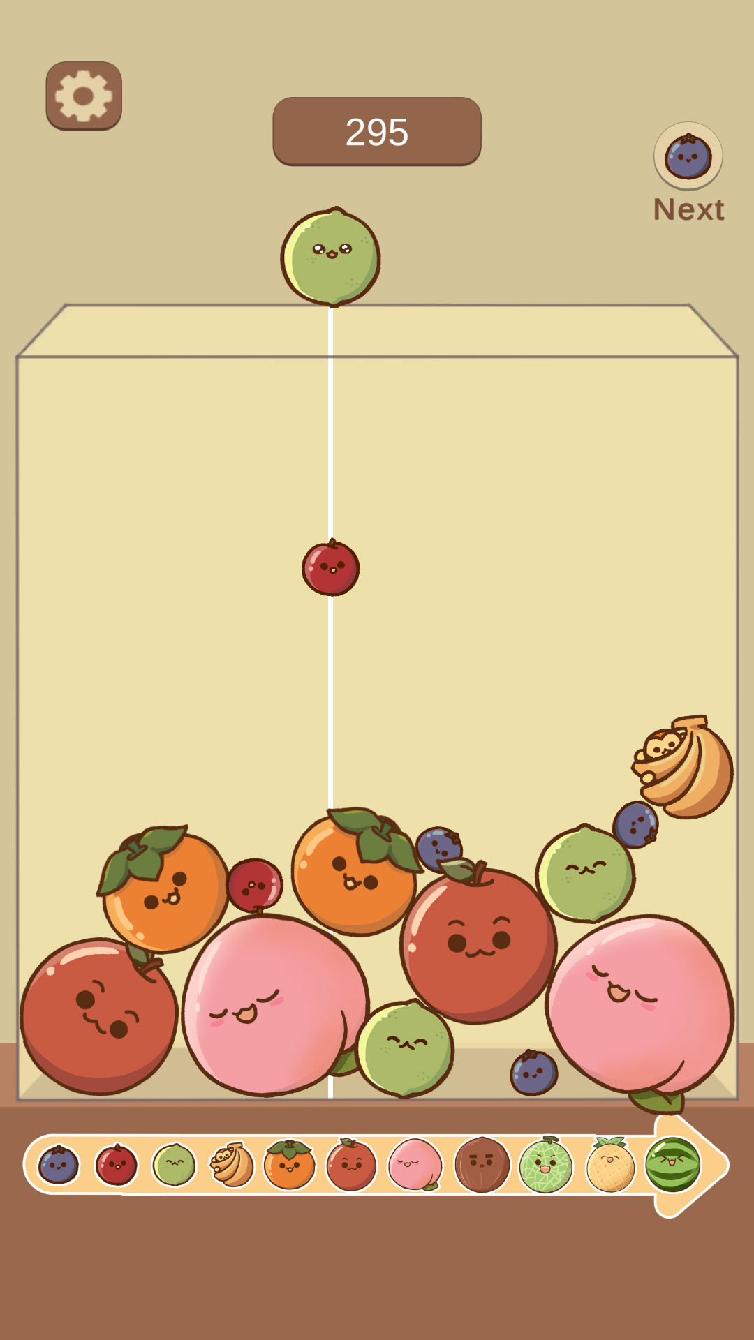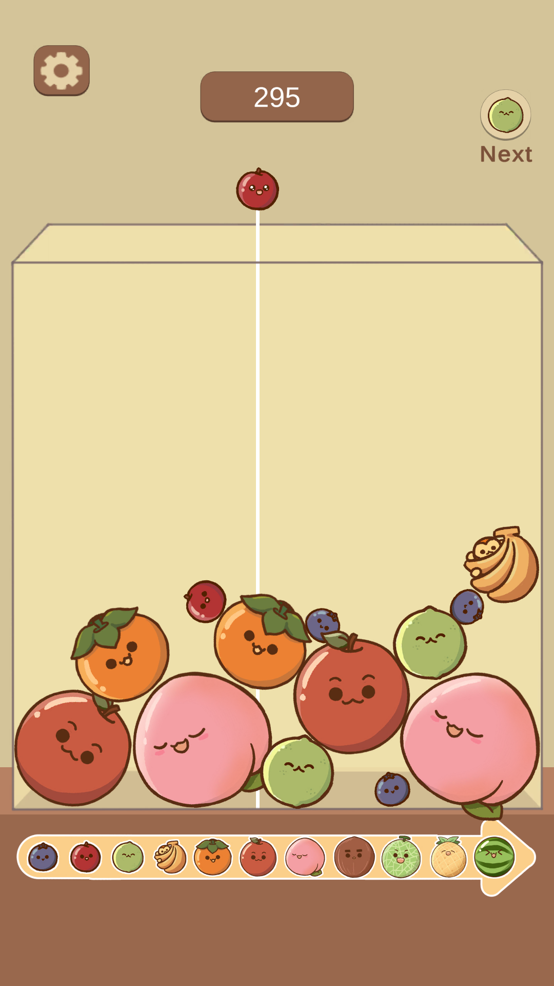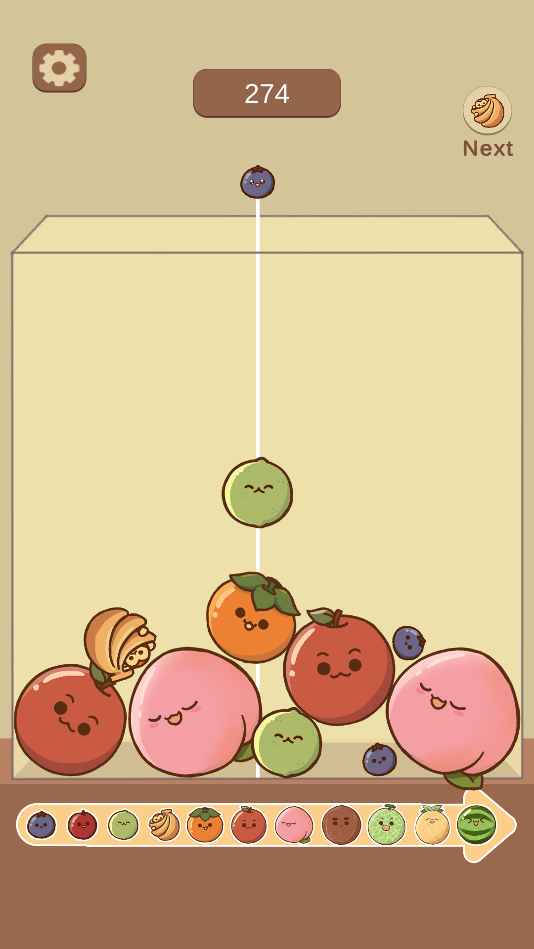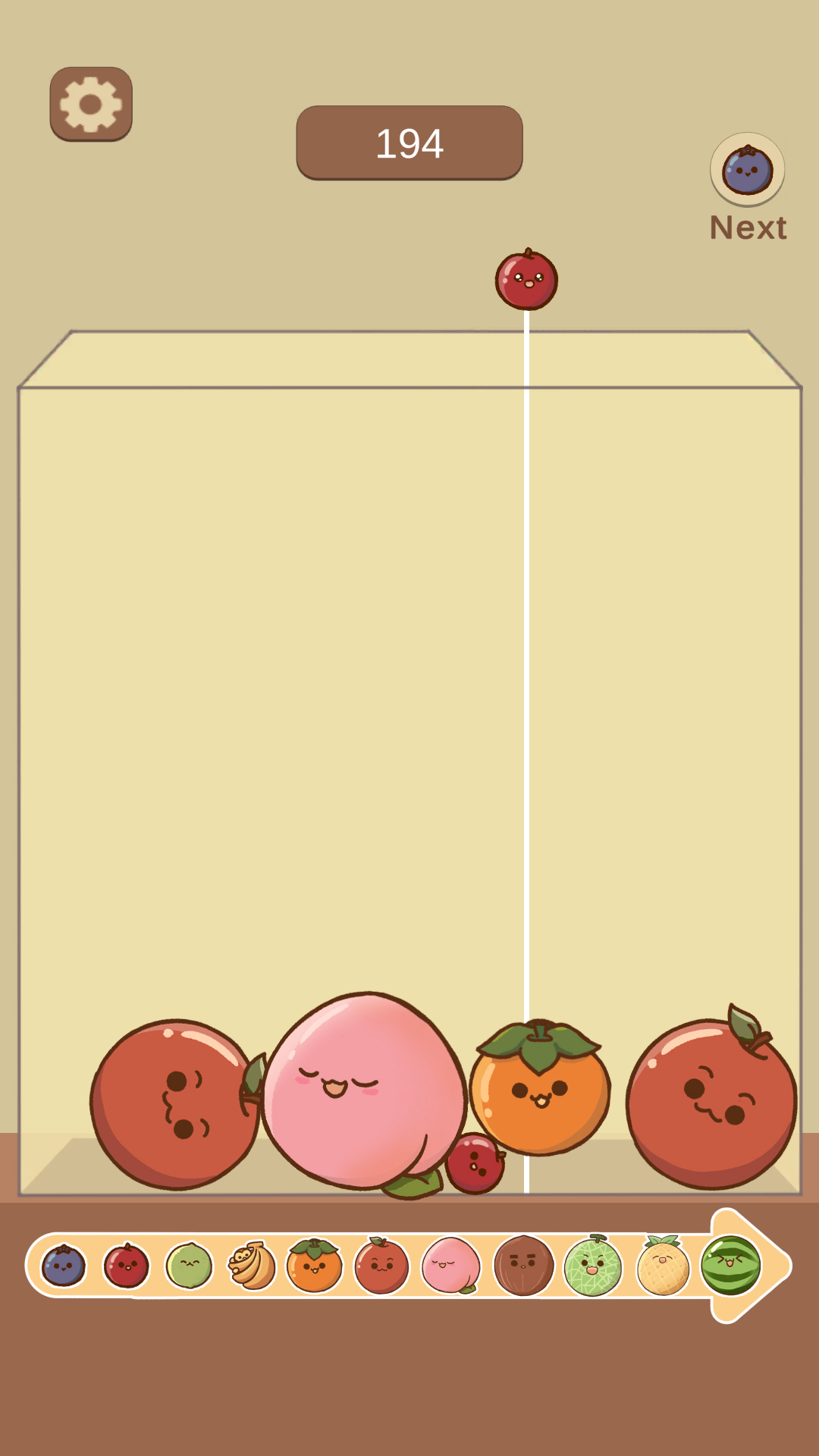 Players drop adorable fruits into a box — when two of the same type touch, they merge into a larger fruit. Keep merging to create the biggest Watermelon before the box overflows!